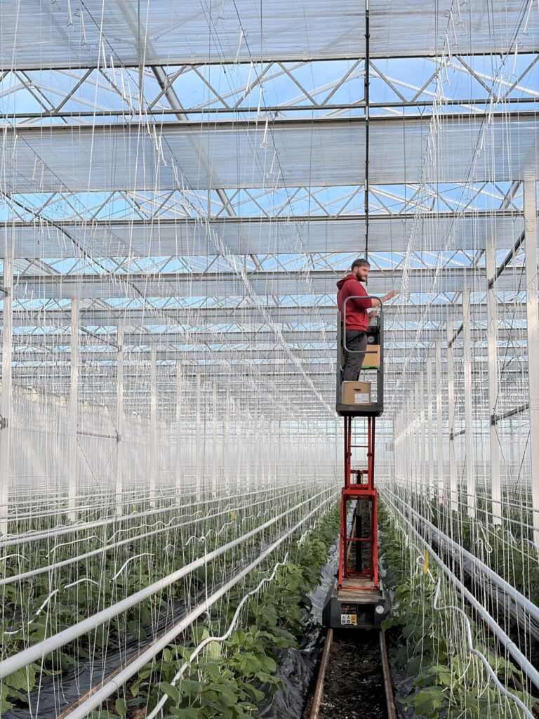 Aujourd’hui, les serres couvrent 7 hectares : 2,4 ha de tomates cerises, 0.8 ha de tomates anciennes, 1,5 ha d’aubergines et 1,5 ha de poivrons. Elles culminent à 6 m de hauteur, permettant une production de 70 kg/m², contre 15 kg dans des serres d’ancienne génération qui ne mesuraient que 2 m.