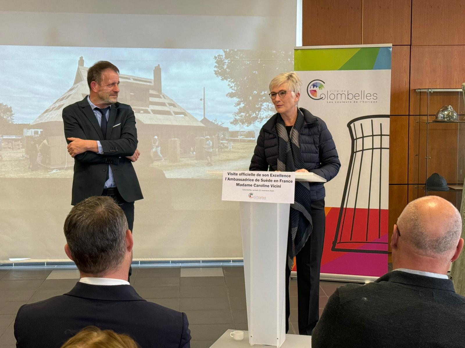 La Ville de Colombelles a eu l’honneur d’accueillir, ce samedi 22 novembre, Son Excellence Caroline Vicini, Ambassadrice de Suède en France, à l’occasion de sa première visite officielle hors de Paris. Cette rencontre a permis de mettre en lumière les liens historiques et toujours vivants qui unissent Colombelles et la Suède depuis plus de 75 ans.